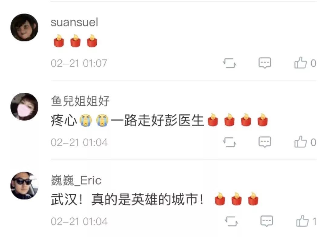 微博认证为武汉市金银潭医院护士的网友“吃胖的瘦子_ ”,昨晚发微博悼念彭银华:“以为你输过血浆后好转,你才29岁,很遗憾用这种方式认识你,彭医生一路走好。”