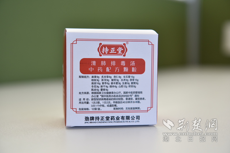 按照采用中西医结合治疗新冠肺炎患者的要求,武汉地区各定点救治医疗机构必须配备“清肺排毒汤”,满足临床需要。2月20日,劲牌公司8205副“清肺排毒汤”首次被送往武汉10所方舱医院。
