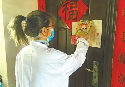 入户排查吃了“闭门羹”,社区工作人员却倍感暖心。24日下午,洪山区洪山街南湖雅园小区社区书记万莹跟往常一样,逐户上门摸排发热病人。排查到9号楼包女士家门前,她在大门上看到了一幅孩子手绘的蜡笔画,画的右上角用铅笔写着一家5口人的体温,与图画订在一起的还有小零食。万莹事后得知,画是包女士6岁儿子画的,他们一家怕社区工作人员敲门影响老人孩子的午休,但又不想耽误社区工作,便提前量好体温,贴在大门上。