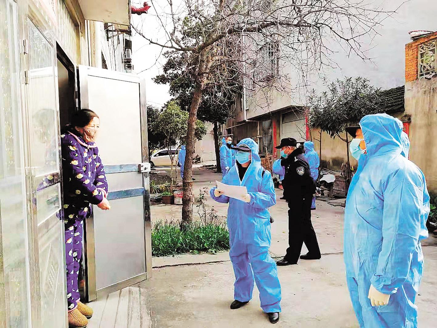 6.13万余名民(辅)警、1.72万余名卫健人员和15.57万余名市场监管人员、村(居)委员会干部、志愿者,共同开展集中“敲门”行动,逐家入户上门,动员“四类人员”接受集中隔离观察。