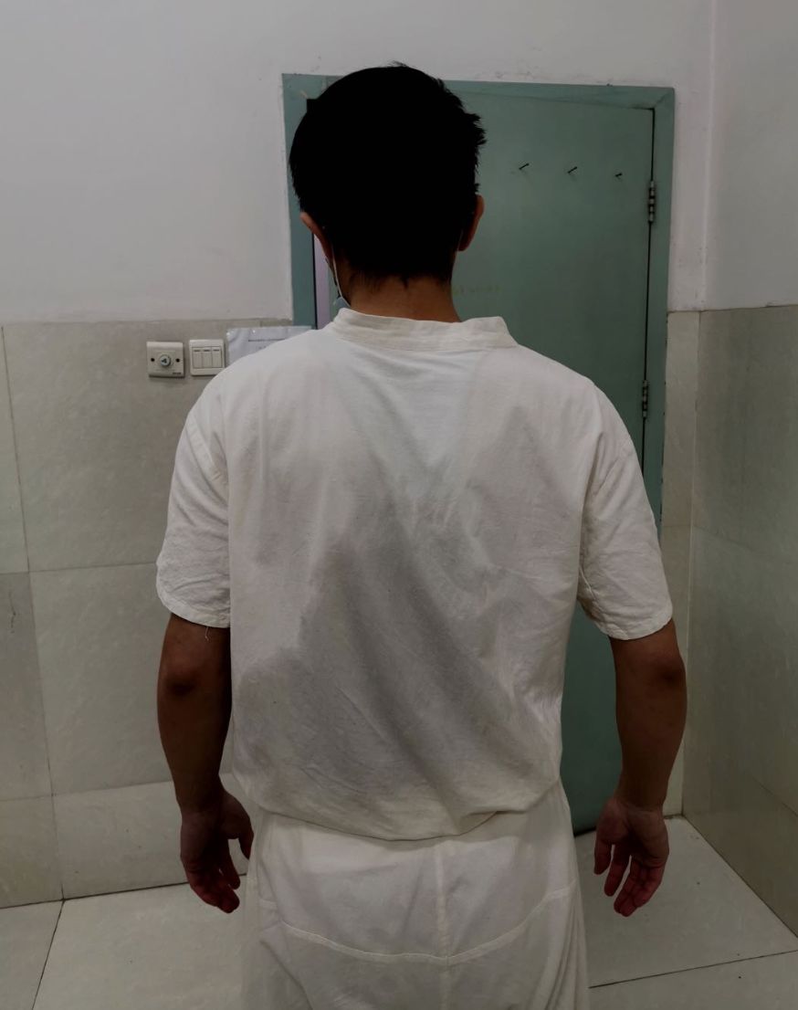 四楼病区收治了一名“特殊”的新冠肺炎患者,因为他还是一位肿瘤晚期患者,身上插着胃管和尿管,生活不能自理,需要护士全方位进行治疗护理和生活照顾。第一次查房时,我发现患者双侧足跟压疮和骶尾部是深部组织损伤,后背压疮到了II期,左手手背处有水泡。由于条件有限,我只能先对患者手部的水泡和后背的压疮进行了处理,双侧足跟用枕头抬高,后背用枕头进行一侧垫起,减少患者骶尾部受压。之后每两个小时带领本院老师一起给患者翻身。通过细心的护理,目前患者的后背部压疮和手背部明显好转,足跟部和骶尾部压疮也没有进一步恶化。
