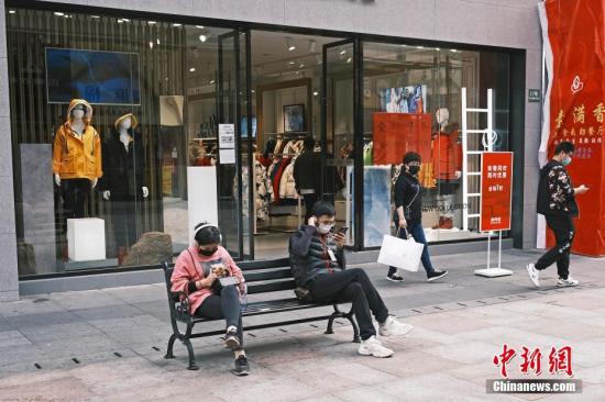 2月25日,在新冠肺炎疫情防控期间,上海市部分企业陆续复工、商铺复市。在上海江桥万达广场,民众戴着口罩在商铺购物。中新社记者 殷立勤 摄