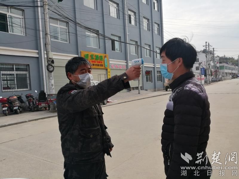 李晓刚是腰磨畈村唯一的村医,除了负责消杀工作外,还要定时上门为群众测量体温,碰到有发热病人,还要及时联系县人民医院作排查。疫情之下,他是村民的健康守护人。