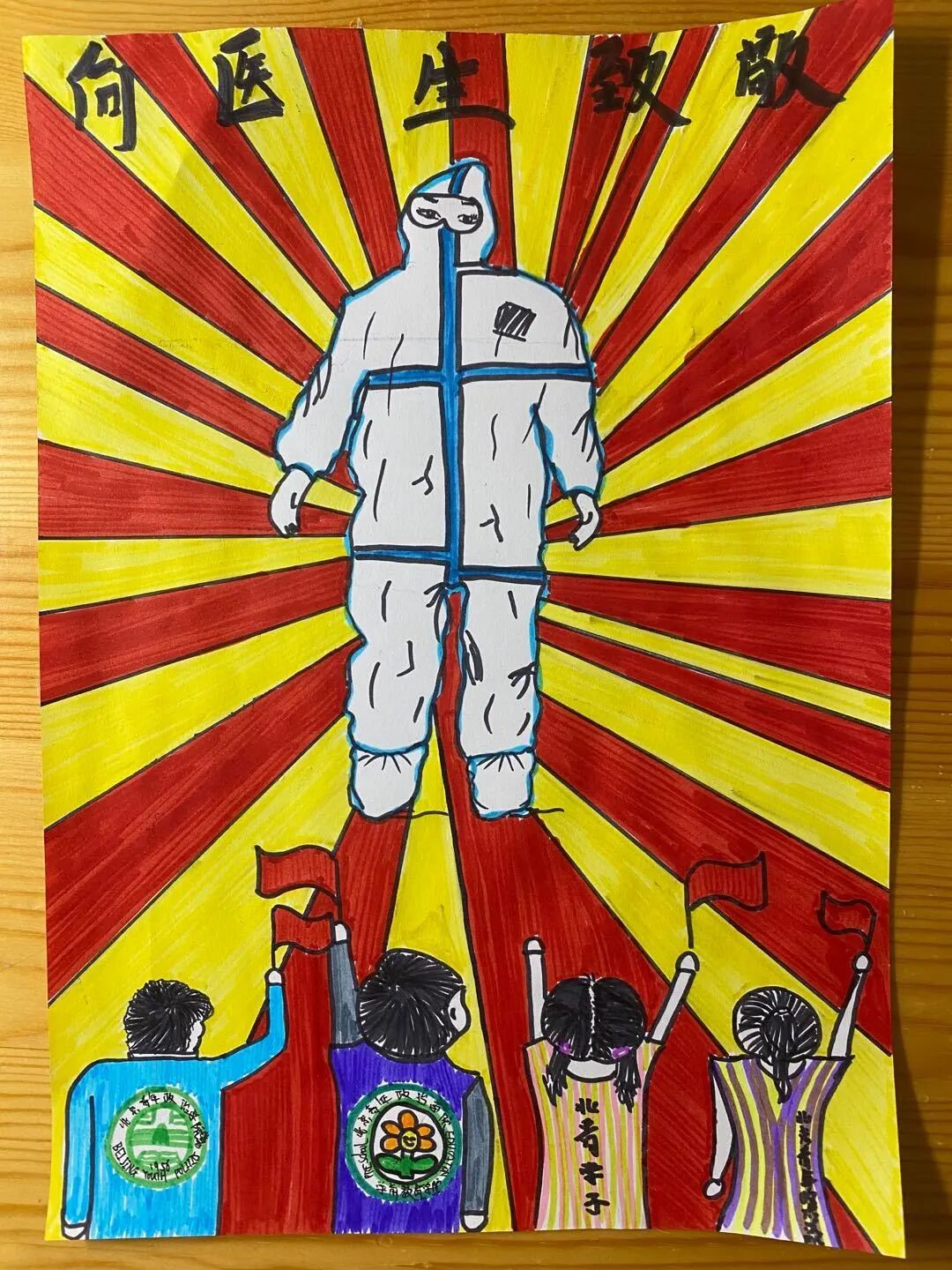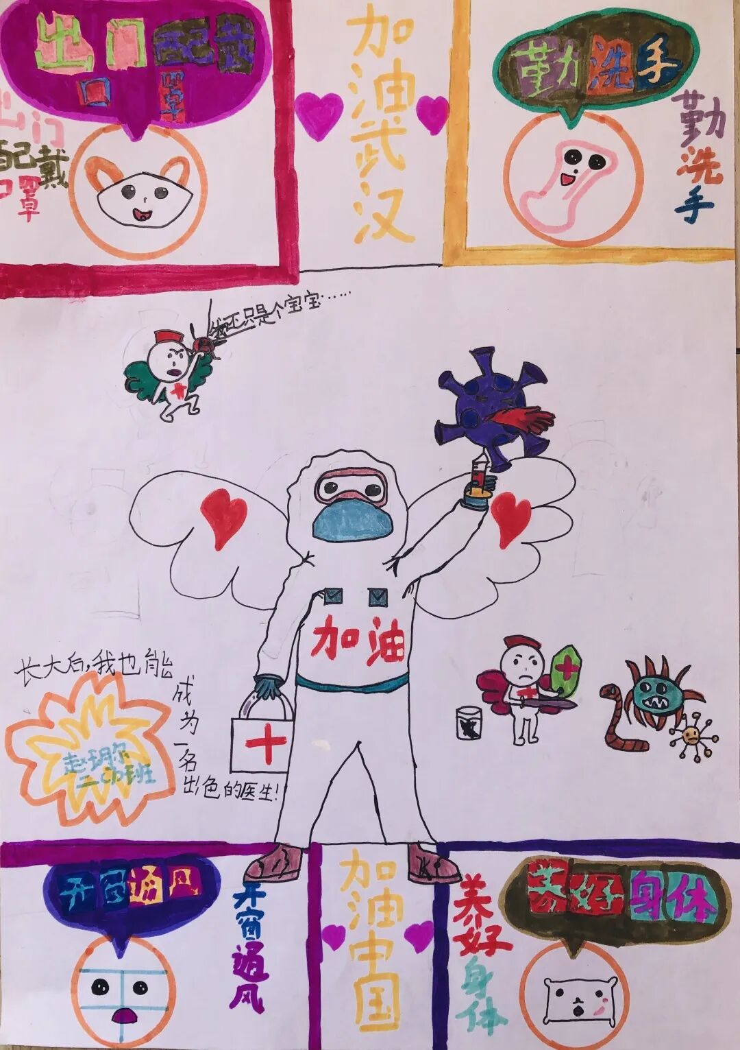 “我长大了想当医生,他们又勇敢又坚强,白衣天使加油!”