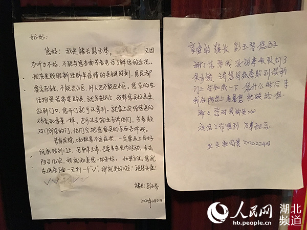 彭玉琴跟杜奶奶约定,如果老人每天觉得精神状况良好,就在留言条上打个勾;老人想吃什么或是想用什么,直接写在纸上,彭玉琴每天会至少两次上门,根据老人的需求购买回物资后就放在门口;老人没事的话就到阳台上转转,彭玉琴在小区值守巡逻的时候,也会下意识的眺望杜奶奶家的阳台,及时了解老人家的情况。