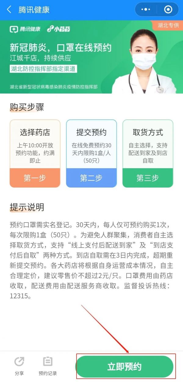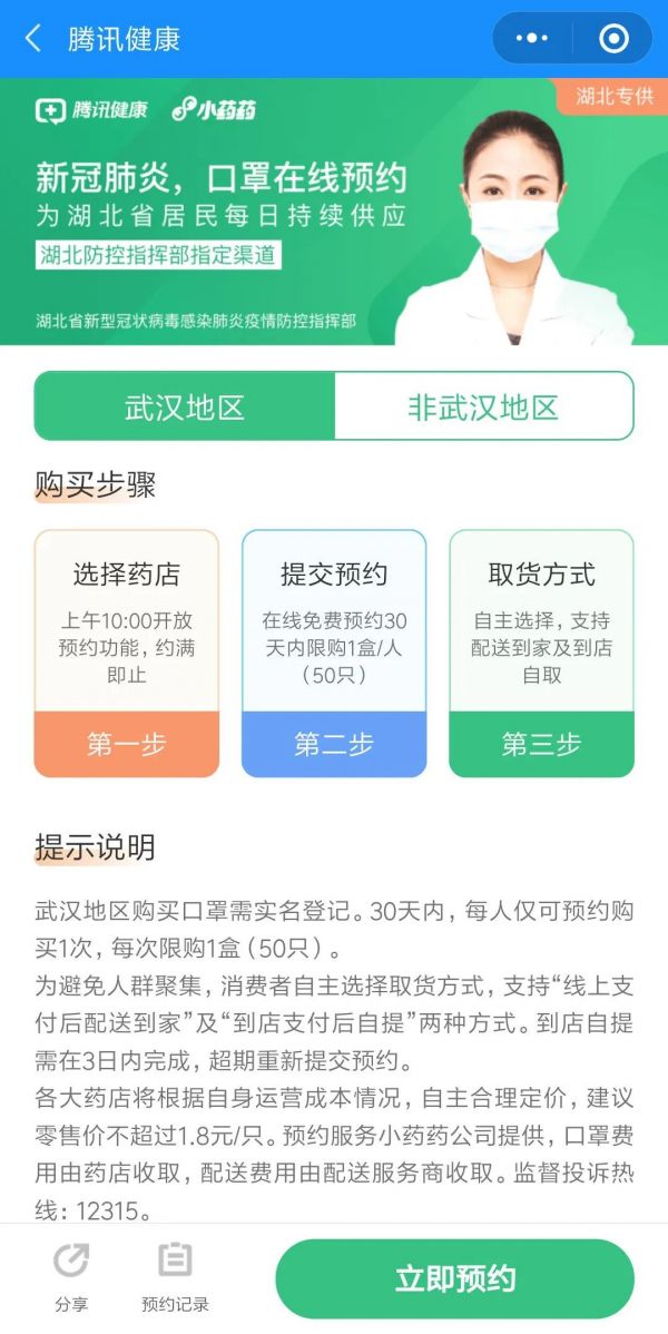 口罩在线预约购买(湖北专供)