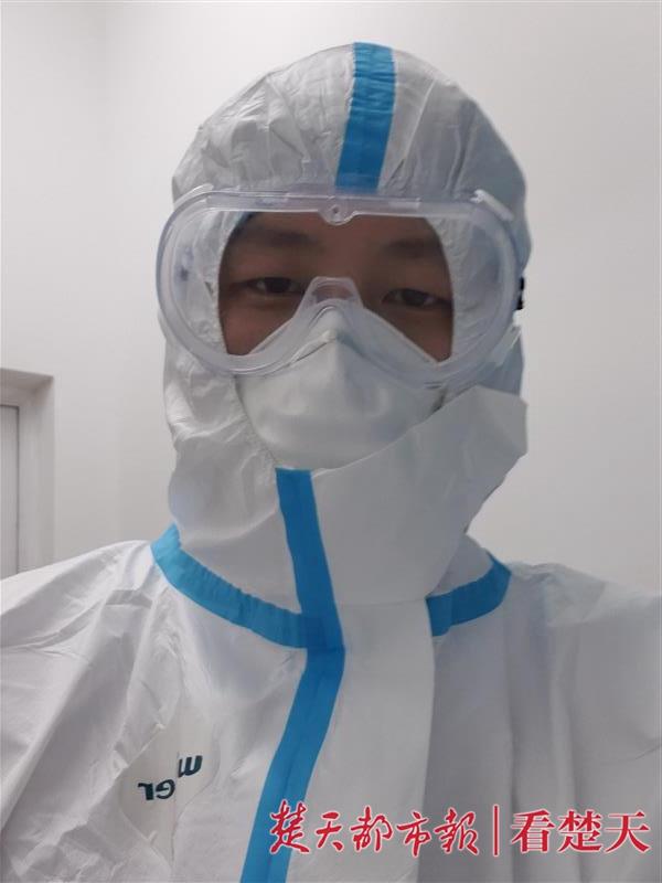杨傲还负责所有病房内外的消毒工作,6层楼,60个房间,16升装的消毒装备,杨傲和另1名同事一天要背30桶消毒液做消杀。每进一次病房就要重新对防护服进行喷消,待到下班脱防护服时,要特别小心,就连动作都需要放缓放慢,以免防护服崩裂。每次洗澡杨傲都会多洗几次,他始终记得,出家门前,父亲对他说的:保护好自己,照顾好病人。