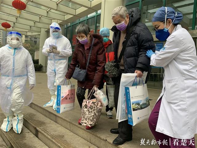 今日出院患者来自9个病区,分别由协和医院及福建、安徽、江西、浙江、四川等地支援医疗队救治管理,其中年龄最大的79岁,最小的30岁。出院患者按照全市统一安排,将集体送往隔离点,进行为期两周的隔离观察。