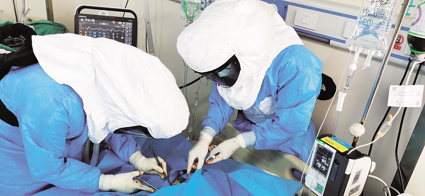 医生在隔离区负压病房,为患者实施ECMO治疗。(通讯员 侯丹丹 供图)