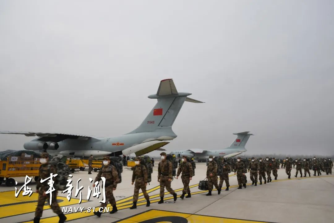 此时,一架运-20军用运输机落地,新一批医疗队队员和医疗物资飞抵天河机场。随后,军队支援湖北医疗队员会师武汉,集结完毕。