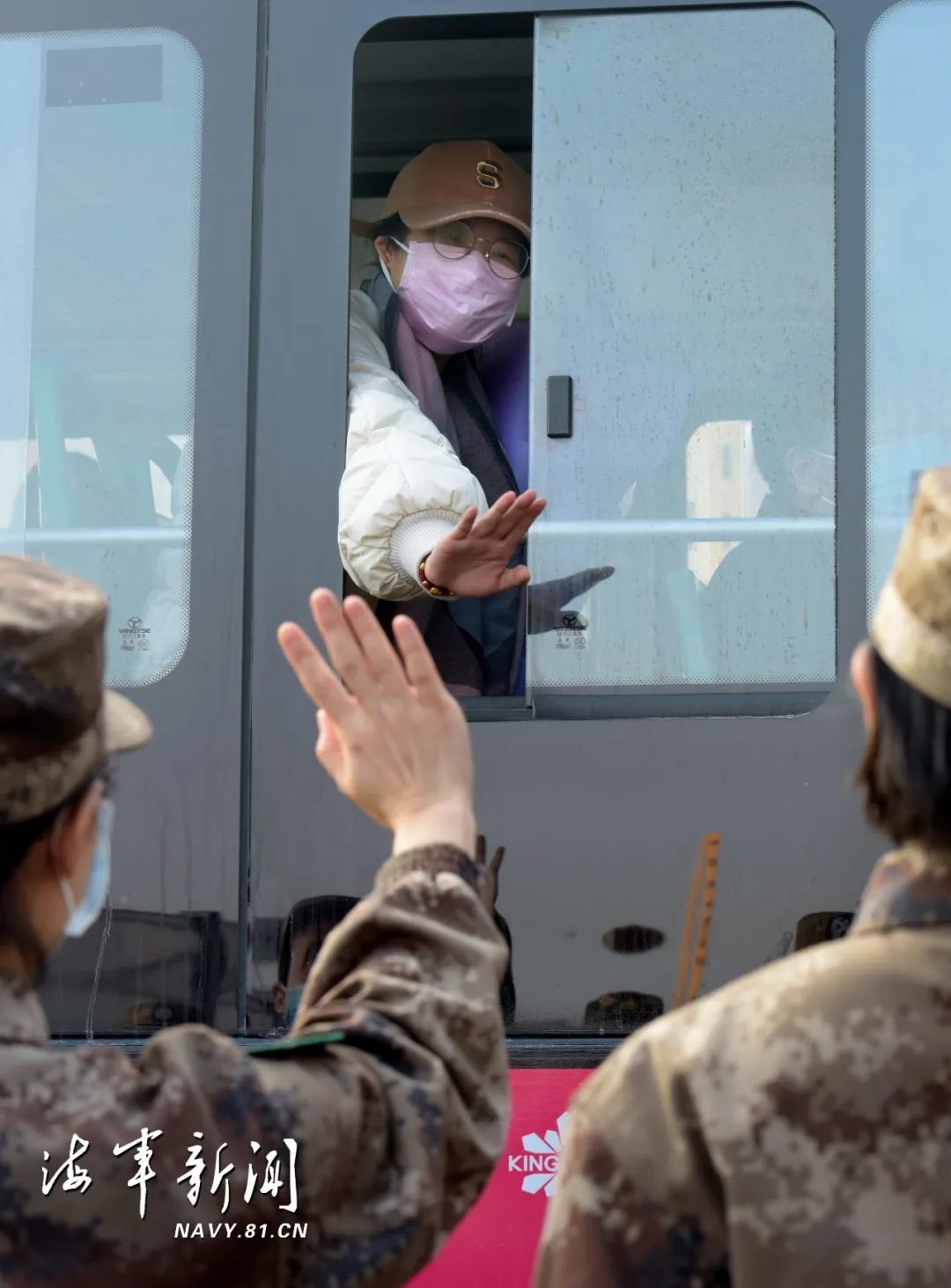 ▲2月13日,武汉火神山医院首批新冠肺炎确诊患者治愈出院,治愈患者与医护人员挥手道别。本报记者 范显海摄