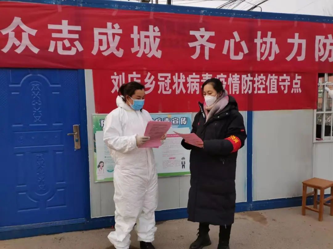 王克萌(右)在整理防控宣传资料