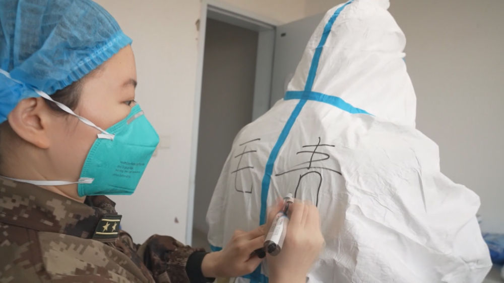 在火神山医院,医护人员都没有白大褂,所有人的着装都在防护服和迷彩服之间切换。