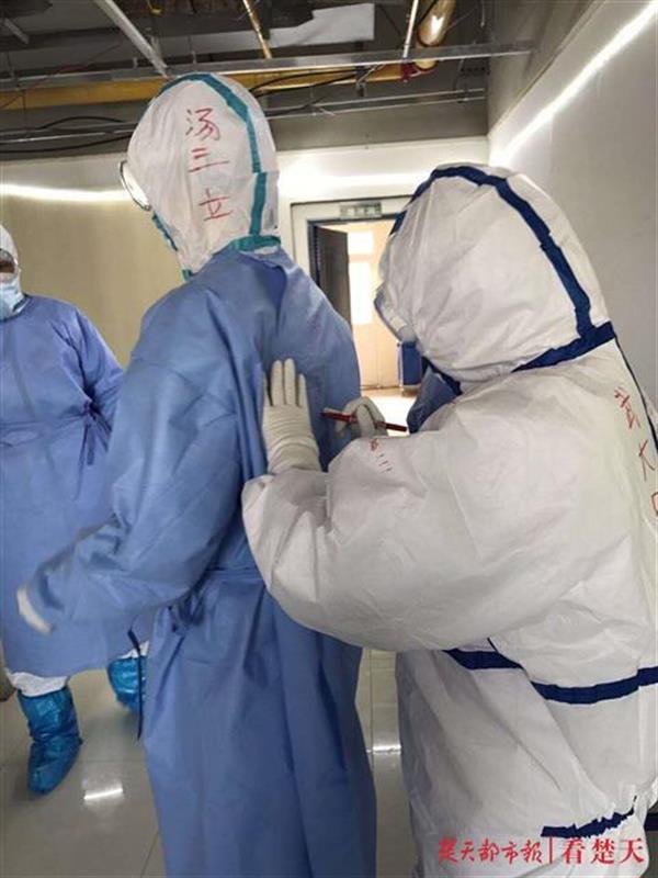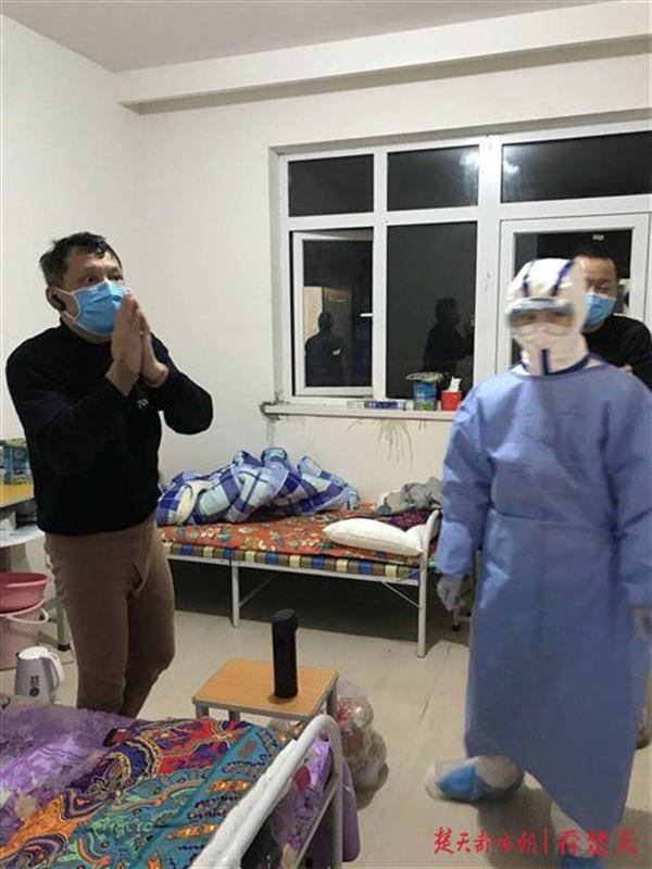 医护人员刚进驻方舱,汤三立就跑去“套近乎”:“你们辛苦了!以后咱们就是一家人,有什么困难尽管说。”说着就带着队员忙前忙后,帮助搬运医疗器械和各类物资。19日上午,省委党校方舱医院迎来第一批病人,接到上级进舱执勤的命令时,汤三立第一个请战进舱:“我跟医生们比较熟,对舱里的情况最了解!”从这以后,只要是汤三立当值,他都跟着医护人员一起查房。