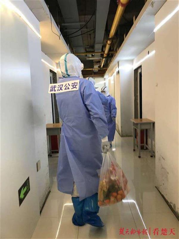 楚天都市报2月28日讯(记者叶文波 通讯员周剑波 梅胭)“李赛,这是时女士要的酸奶和水果,这是邓小姐要的饼干,还有刘女士要的勺子,分开密封装好,患者名字、房间号码和病床号都写在纸上,千万不能弄错。”2月26日晚上11时,武汉黄陂民警汤三立和搭档辅警李赛正在做最后的进舱准备,27日凌晨2时他们将进入舱内执行安保勤务,顺便把利用休息时间帮患者采购的东西带进去。