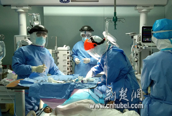 荆楚网客户端-荆楚网消息(记者 黄涛 通讯员杜巍巍、邹亚琴 )铮亮的手术刀片,直抵病人喉部。朱霆知道,下一瞬间,剧烈的胸腔气流就会携带着新冠病毒,喷薄而出。没有丝毫犹豫,他选择笔直划了下去。