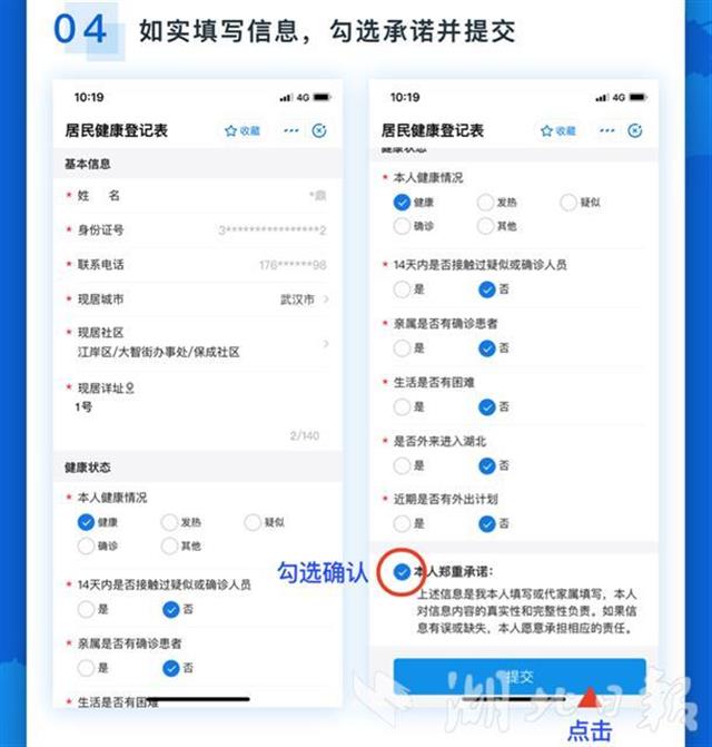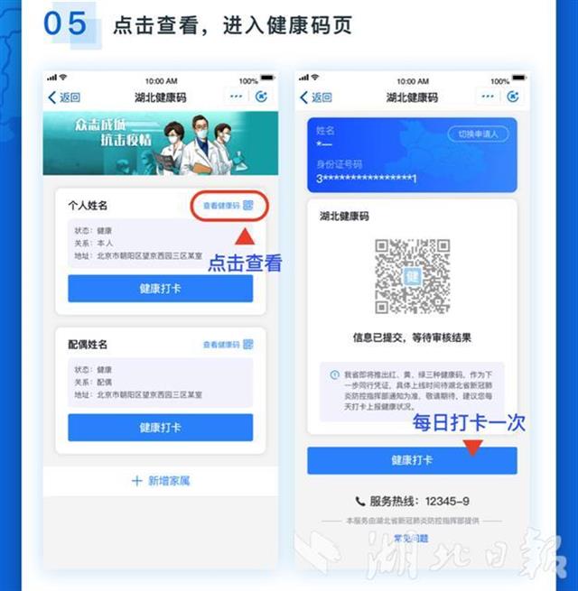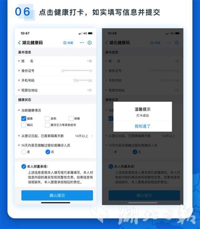 健康信息登记系统操作路径为:打开支付宝或“鄂汇办”APP,搜索“湖北健康码”;如实填写信息,勾选承诺并提交,完成“湖北省居民健康登记”;点击查看,进入健康码页面;每日完成健康打卡,如实填报个人健康情况。据介绍,“湖北健康码”处于暂行阶段,居民通过支付宝平台、“鄂汇办”APP提交个人健康登记信息后,即进入“健康码”待审状态,各地具体上线时间和通行方案,需当地防疫指挥部另行通知。