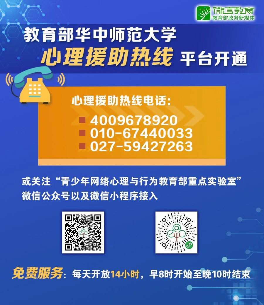 荆楚网客户端—荆楚网消息(记者 王舒娴)2月24日,教育部华中师范大学心理援助热线平台正式对外发布,来自全国1200多所高校和相关机构的专业人员分批上岗,最多可支持1000人同时接入,每天开放14小时,早8时开始至晚10时结束,为民众构筑起一道抗疫心理防线。