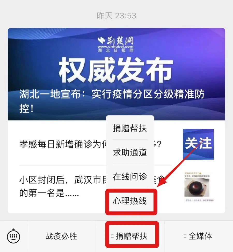 平台特别面向三类人群提供精准心理援助,即湖北省及武汉市防疫工作一线的医护人员、新冠肺炎患者及家属、公安干警及安保人员,同时面向公众提供服务。求助者可通过三种方式免费进行心理咨询:一是拨打心理援助热线电话4009678920,010-67440033,027-59427263;二是关注“荆楚网”微信公众号,回复关键词“心理热线”,或点击菜单栏中的“心理热线”即可接入;三是通过相关的微信小程序咨询。