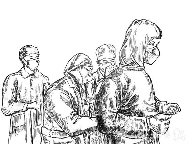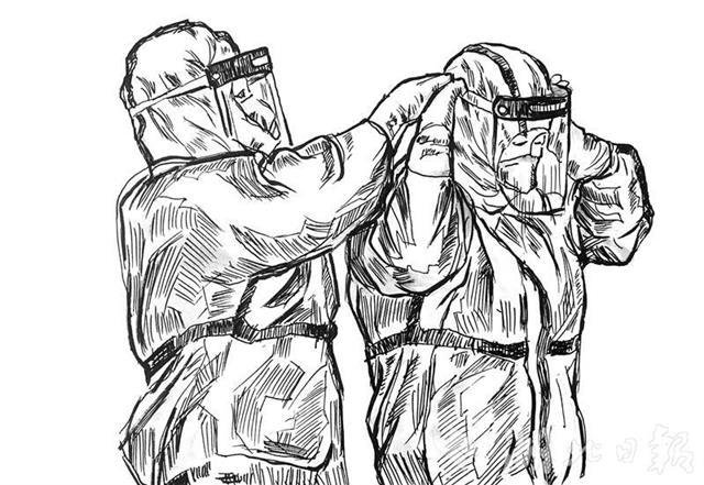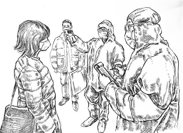 2月14日起,陈华文启动武汉战“疫”主题钢笔素描创作。他在网上查阅各种相关图片,还将学校疫情防控报道中的图片作为创作的源泉。他说:“画中的人物都戴有口罩,这在我以前习画经历中从未有过。”