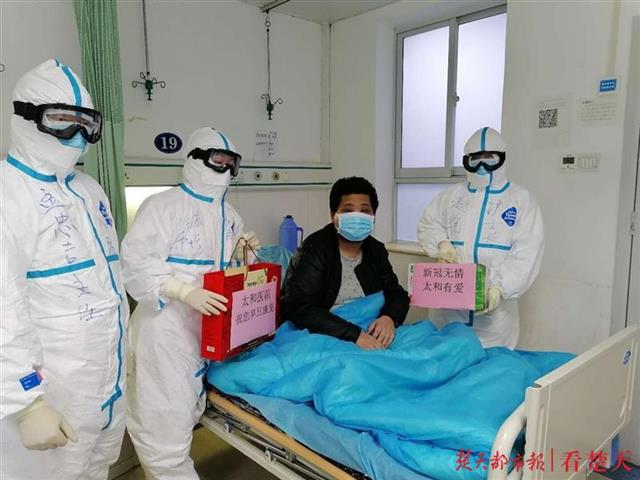 “我今天出院了,心情很激动,感谢太和医院孟主任及其他医护人员20多天来的精心治疗和悉心照料!”2月29日上午,潘先生从太和医院治愈出院,对医护人员的感激之情溢于言表。出院后,潘先生将定点隔离观察14天。