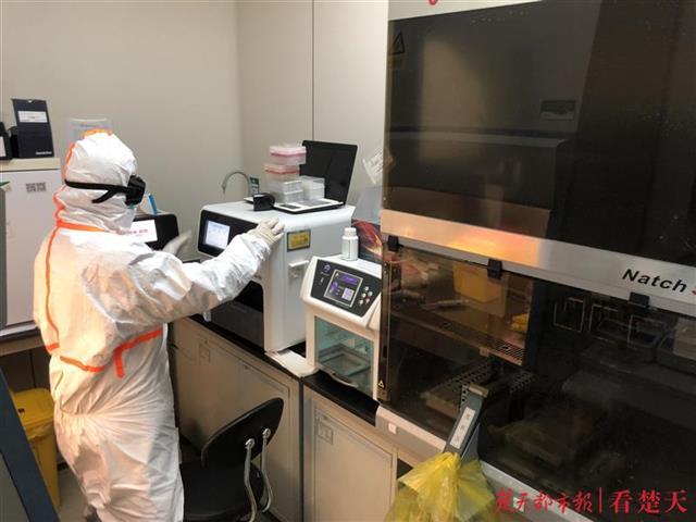 1月31日,武汉大学人民医院检验医学科在全国率先开展了检测前、将新冠病毒灭活后再检测的实验:将新冠病毒原始样本放进专用“烤箱”,加热至56℃放置45分钟,取出静止10-15分钟后再检测。实验结果证明:与原始样本比对,灭活后数据结果未见明显差异。这一方式随后被迅速用于该实验室的检测,并向湖北省内多家检测机构推广,大大降低了从事新冠病毒核酸检测实验室人员被感染的风险。