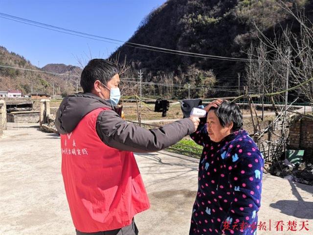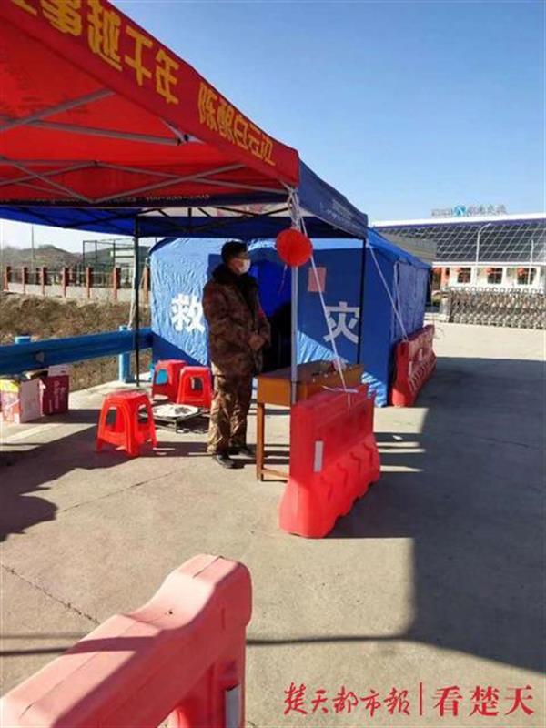军店镇退役军人陈龙,是一个有着十三年兵龄的退伍老兵,多年入党的老党员,一个基层乡镇退役军人服务站的新兵,在这严峻时刻,他主动请缨,从正月初三开始,连续奋战坚守在高速公路以及县乡道路口执勤;同时,深入确诊病人接触者家中,工作至凌晨,将15名密切接触者带到集中观察点隔离观察。