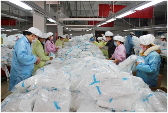 面对医用无纺布面料和医用胶条紧缺,负责原材料采购的轻纺公司团队发挥供应链优势,多渠道联系和开发供应商,先后联系50多家医用无纺布面料和医用胶条供应商,确保生产线连续不断。