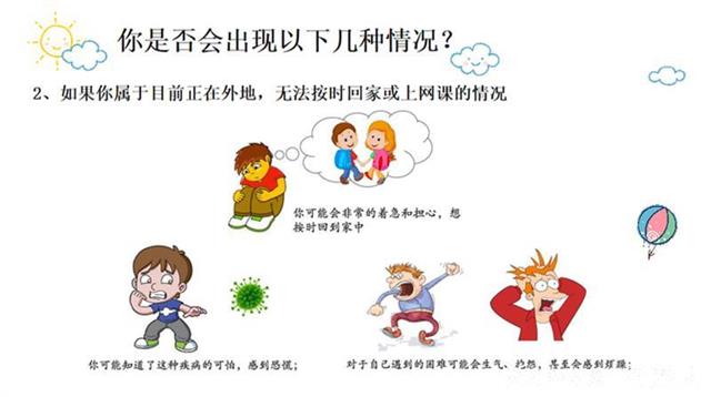 心理课上,甄老师在线推送了一些自己制作的卡通图画,用孩子们喜欢并容易理解的话语,让他们明白人可能会因为哪些情绪而感到不适,遇到负面情绪又该如何化解等。每名学生还传上了自己在家制作的“情绪温度计”表格。