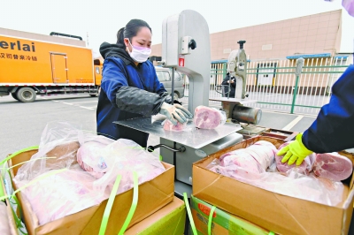 这家临时工厂是中商超市为储备冻猪肉保供专门开辟的,供应链上每个环节全力以赴,让储备肉走进社区,走上居民餐桌。