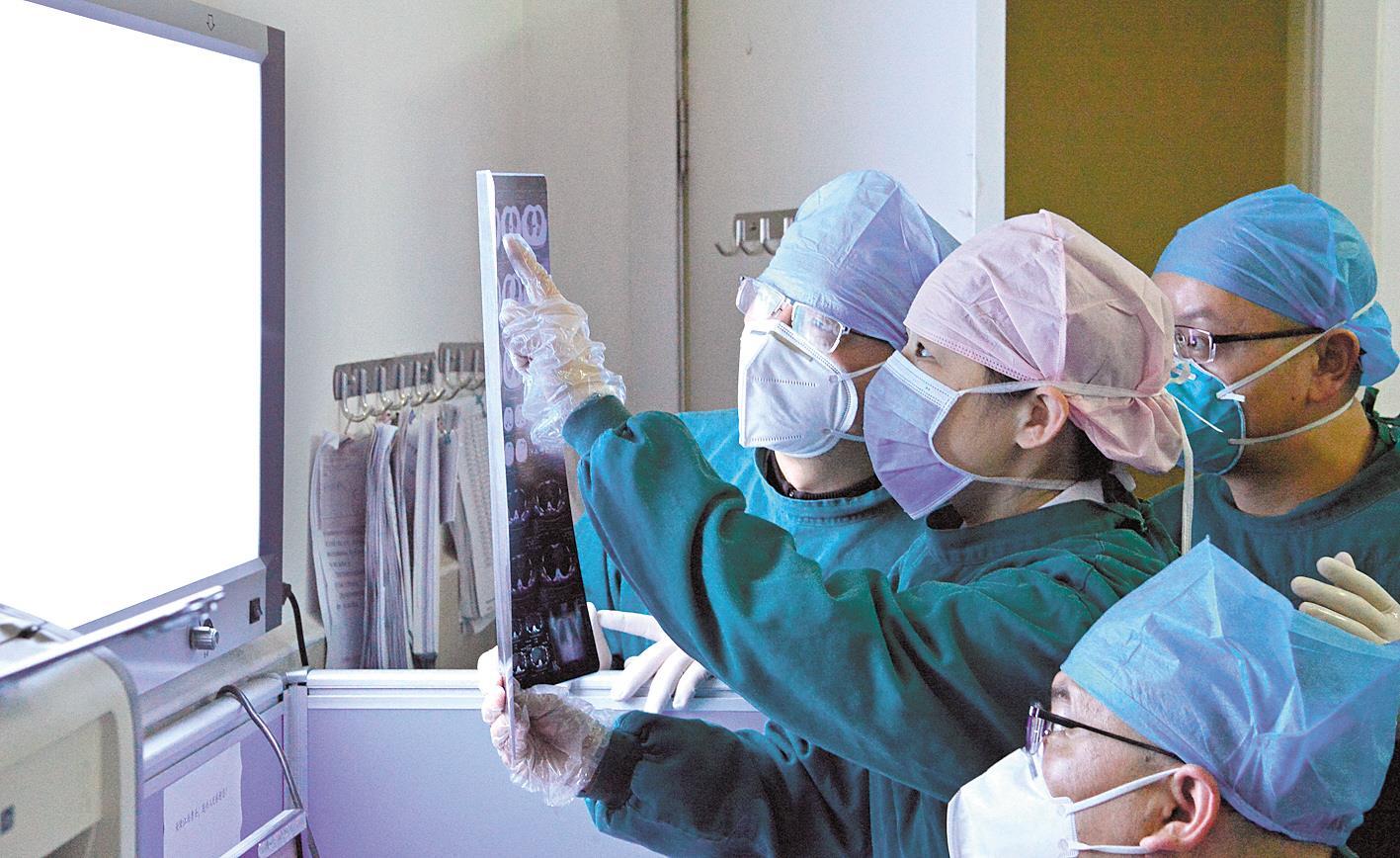 在曾都医院,江西援随医疗队员对患者病情进行会诊。(江西日报记者 杨继红 摄)