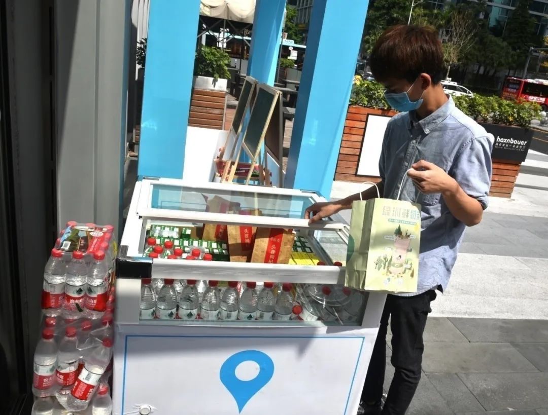 2月29日,深圳一商场在门口设置“无人冰柜”。新华社记者 赵瑞希 摄