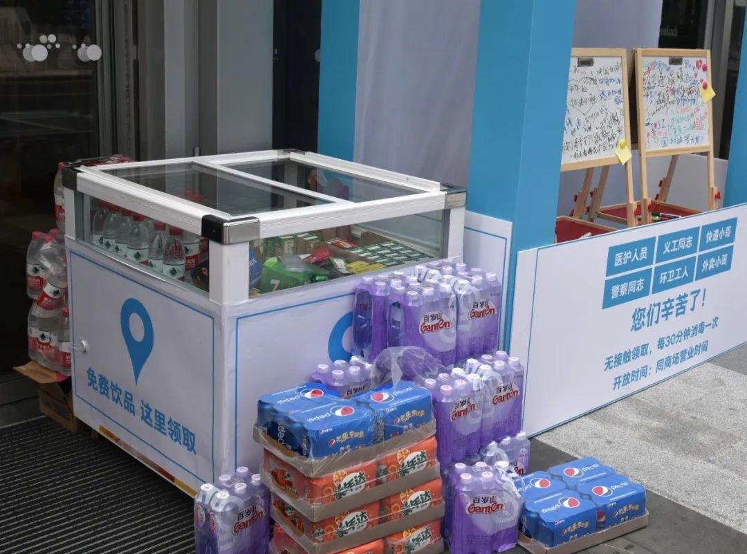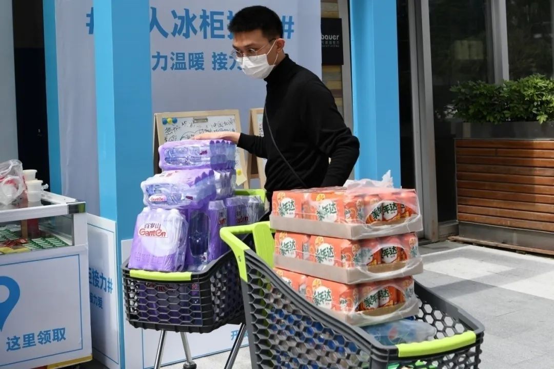 2月29日,一位市民采购饮品后委托超市工作人员送到“无人冰柜”。新华社记者 梁旭 摄