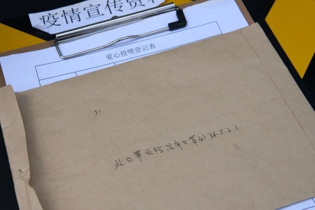 一位市民送来口罩,信封上写着“此口罩发给没有口罩的环卫工人”。新华社记者 梁旭 摄