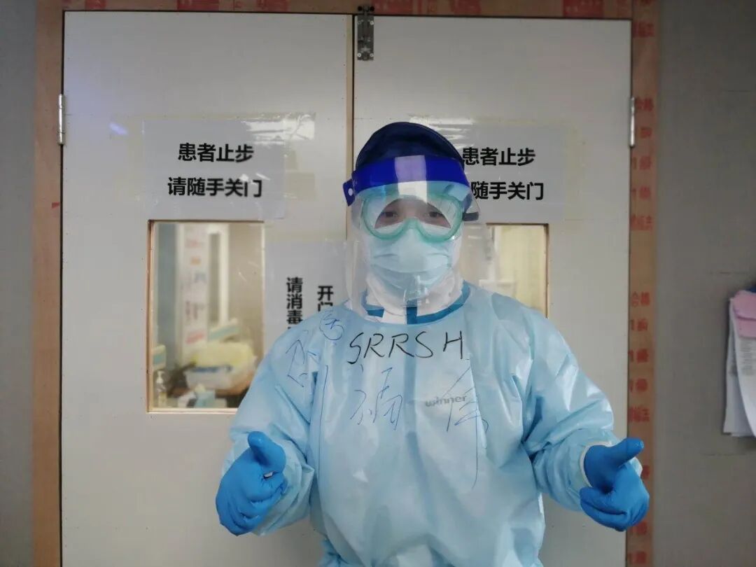 马上有老师要换防了,可能下次休息完就不是我们这一小组了,为了特殊时期的革命友谊,交完班后,我就张罗大家在自己的防护手套上各写一个字,拼成了这样一句话“感恩有你,承蒙遇见,加油!”尽管身穿防护服、带着口罩,看不清彼此的脸,但我知道我们的心始终相连。