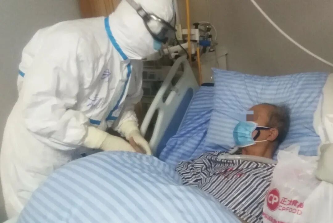 病房里大多都是昏迷患者,有一位清醒的老大爷让我印象深刻。他看到我们到来,像是鼓足了全身的力气给我们竖起了大拇指,从他满含情绪的双眸里,我深深体会到他的脆弱和希冀,更燃起了我和病毒斗争的信心和勇气。
