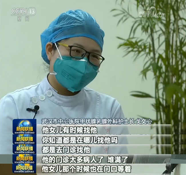 央视网消息(新闻联播):武汉市中心医院甲状腺乳腺外科主任江学庆是一位被大家亲切地称为“60分贝暖医”的好医生。新冠肺炎疫情发生后,他在工作当中不幸感染,生命定格在了江城三月的第一天。