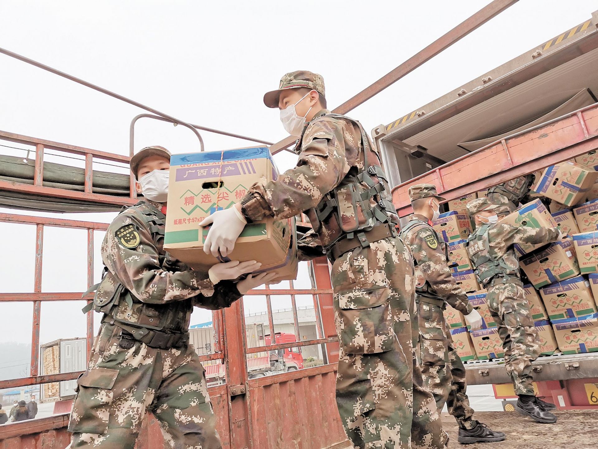 2月24日,一列承载着壮乡人民爱心的冷链列车抵达十堰。车上的15个集装厢里,装载着10万袋螺蛳粉、5万公斤砂糖橘等物资。