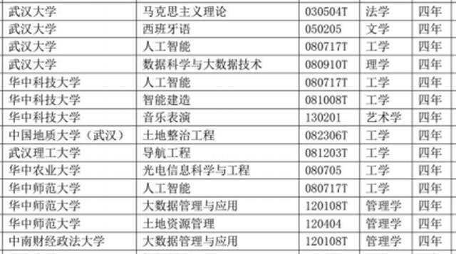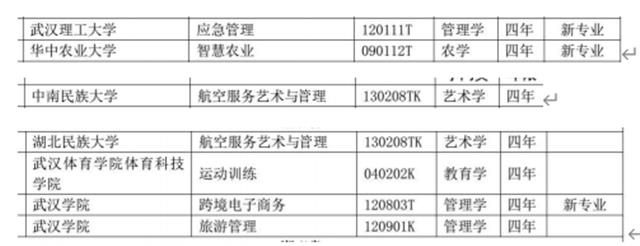 楚天都市报记者发现,湖北省共有48所高校新增87个备案本科专业,6所高校(其中有5所也在备案专业新增院校里)共新增7个审批本科专业。