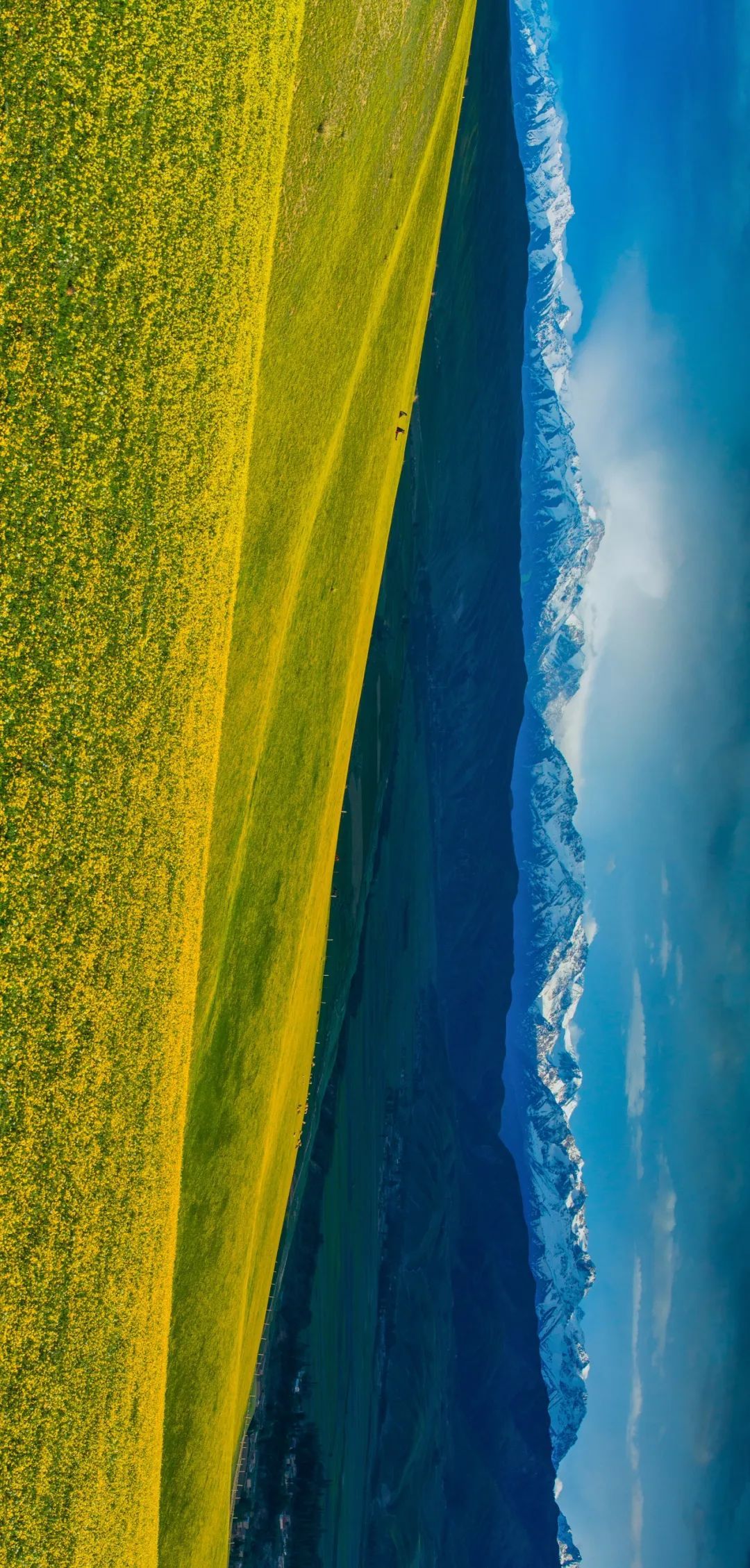 其中一些条件相对较好的地方在人类的开拓下油菜花可以像大海一样铺陈开来壮阔无边(请横屏观看,青海门源油菜花,摄影师@姜曦)▼