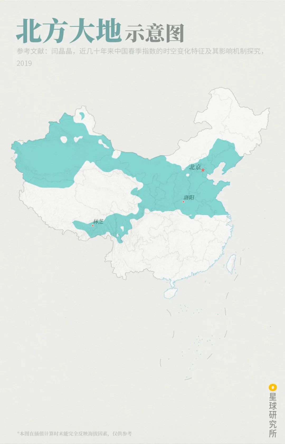 冬去春来、夏隐秋至这里是中国的四季分明地带春天的物候指征更加显著(秦淮之南,制图@巩向杰&赵榜/星球研究所)▼