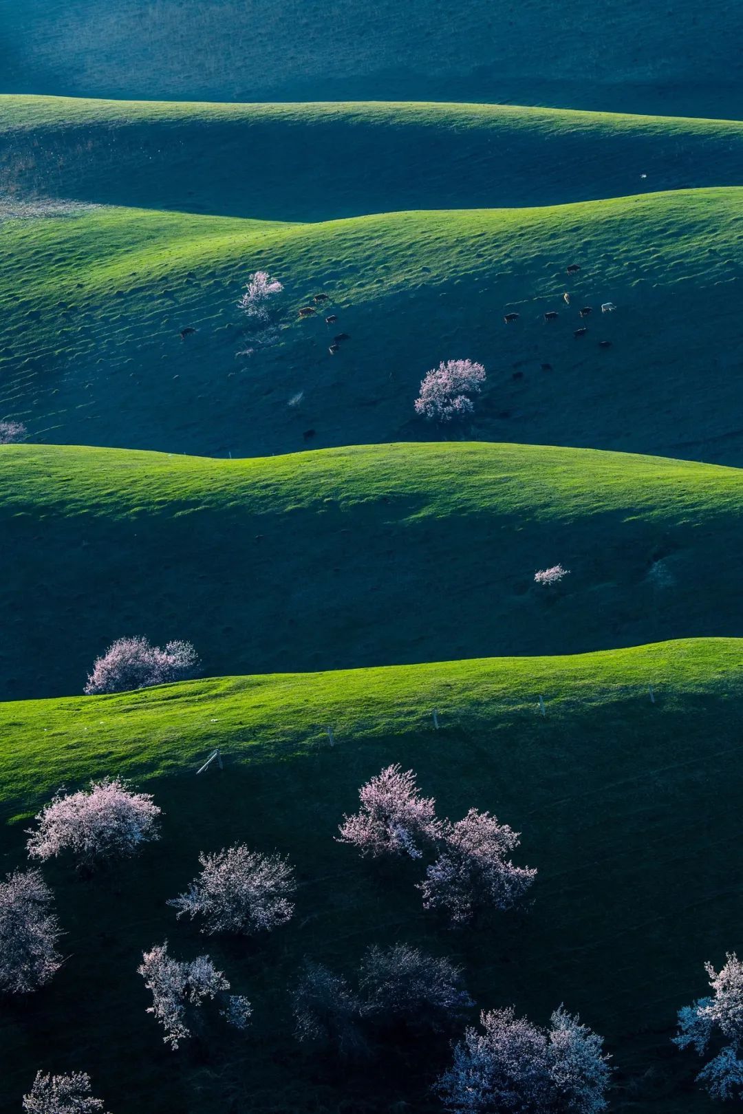 新疆是杏的起源中心每年3-4月杏花都会开遍山谷(请横屏观看,伊犁杏花沟早春,摄影师@张文静)▼