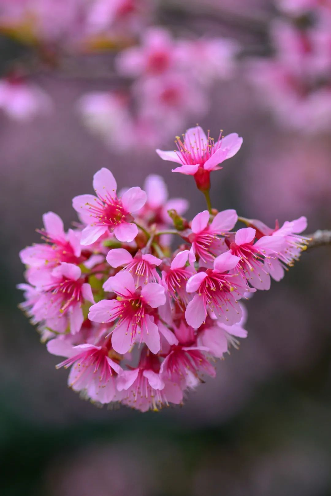 其中中国科学院西双版纳热带植物园所在的云南西双版纳勐(měng)仑镇樱属植物高盆樱桃在1月份最先盛开是当地春季到来的标志之一(西双版纳的高盆樱桃,注意观察:樱花花梗较长,是与桃、杏、梅区别的方法之一,摄影师@朱仁斌/中国科学院西双版纳热带植物园&中国植物园联盟;勐仑镇的物候资料主要依据宛敏渭等《自然历选编》)▼