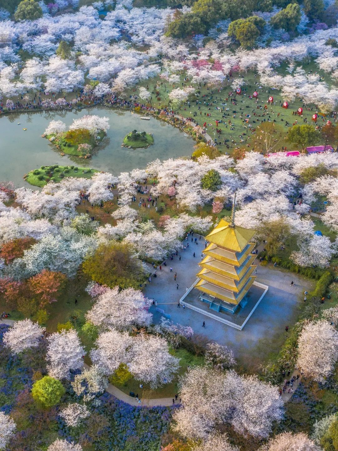 其中每年3月的武汉都会从寒冬中完全醒来盛开的樱花和春天一起回到武汉人的身边让武汉人知道这个城市依然灿烂(武汉东湖樱花园,摄影师@田春雨)▼