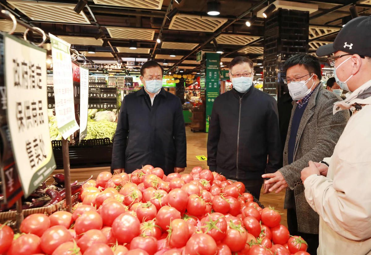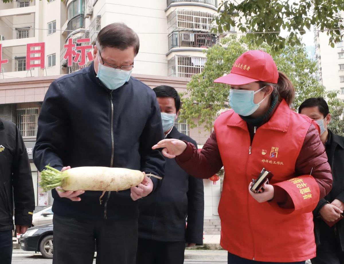 在小区封闭管理、公共区域管控的情况下,中商徐东平价广场和周边5个街道的2000多个小区对接,积极探索社区团购配送服务,单日配送高峰近2万单。40多名志愿者正和商超员工一起,将菜品分拣打包装上公交车,准备送往各个社区。应勇与志愿者亲切交谈,详细了解志愿者人数、工作时间、服务情况,感谢他们的辛勤付出。随后他走进卖场察看物资储备和价格情况,要求国有商超企业切实履行社会责任,为城市生活供应发挥托底保障作用。
