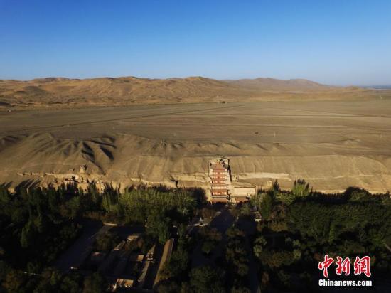 资料图:空中俯瞰世界遗产敦煌莫高窟。杨艳敏 摄