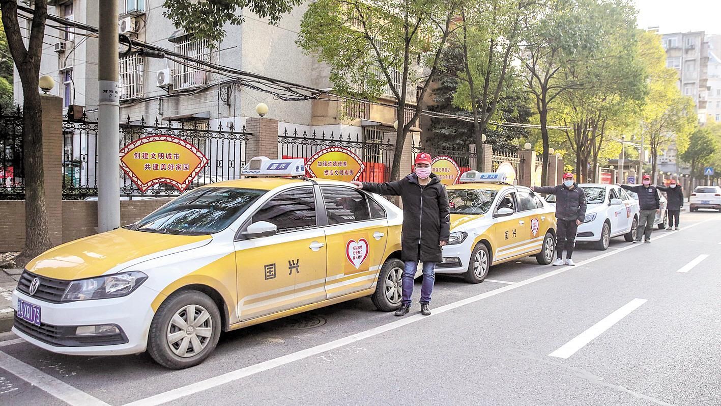 公共交通停运和私家车禁行后,武汉市新型肺炎防控指挥部于1月24日紧急征召6000台出租车、网约车,分配给中心城区每个社区3台至5台,由社区居委会统一调度使用,为辖区居民出行提供免费服务,为生活不便居民上门免费提供送餐、送菜、送药等居家服务。图为1月30日,志愿车在社区门口等候。武汉市武昌区积玉桥街四清里社区分配了5台志愿车供社区居民应急之用,给特殊时期的居民带来了方便。(湖北日报全媒记者 梅涛 摄)