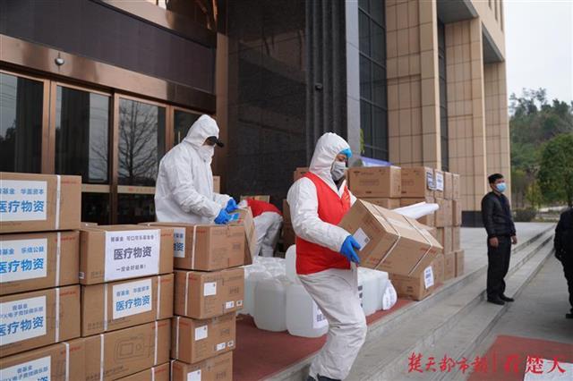 当晚23时,装有10万只一次性口罩、6900个护目镜、470套防护服等物资的运输车返回恩施,该批物资被连夜发放至恩施州中心医院、湖北民族大学附属民大医院等医疗机构,这是恩施公益组织最早一批直达疫情防控一线的物资。