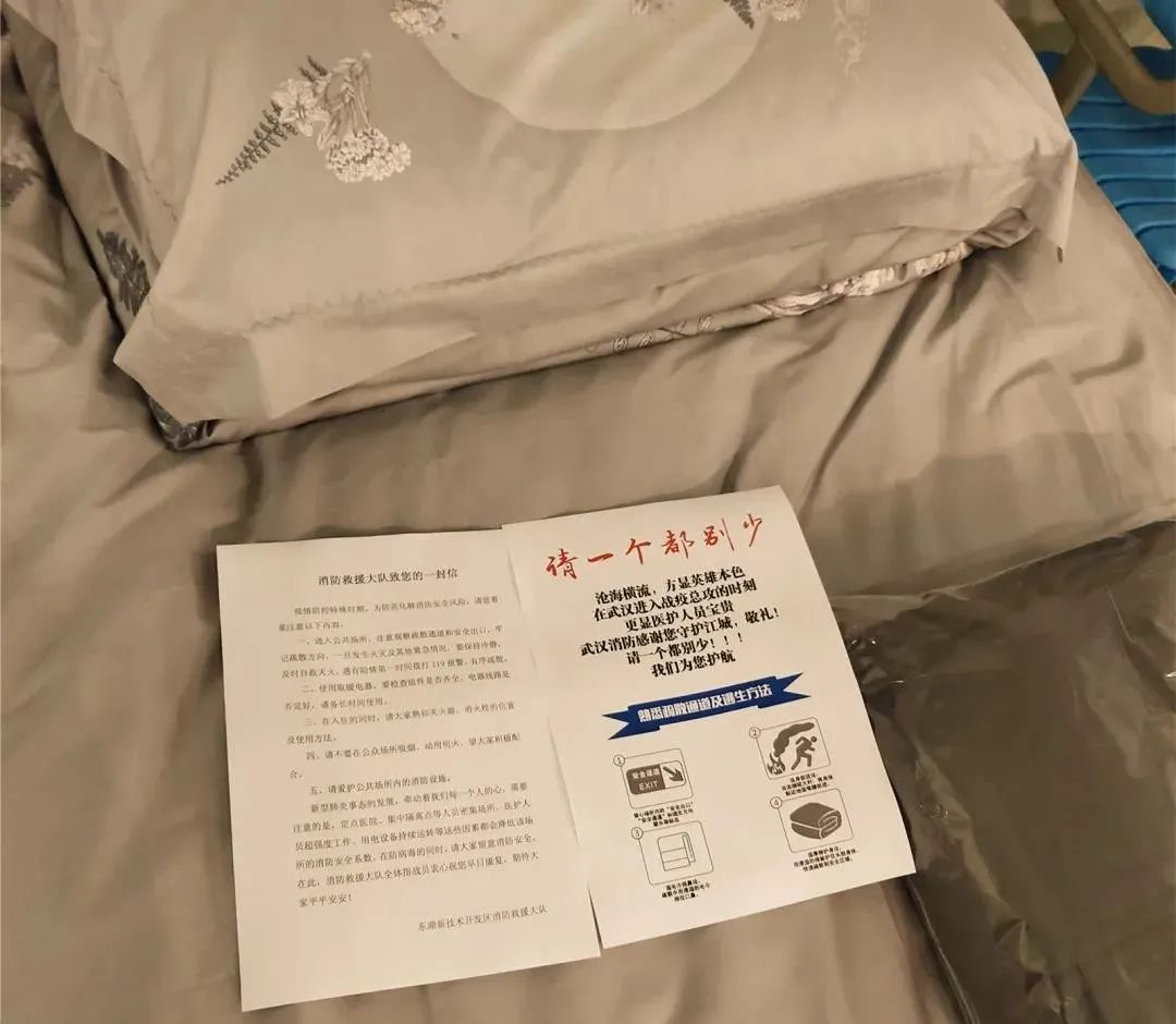“请一个都别少”,消防宣传页上六个字是武汉支队流芳消防救援站对奋战在抗疫一线医务人员的真切希望,更是流芳消防救援站消防员的美好愿景。