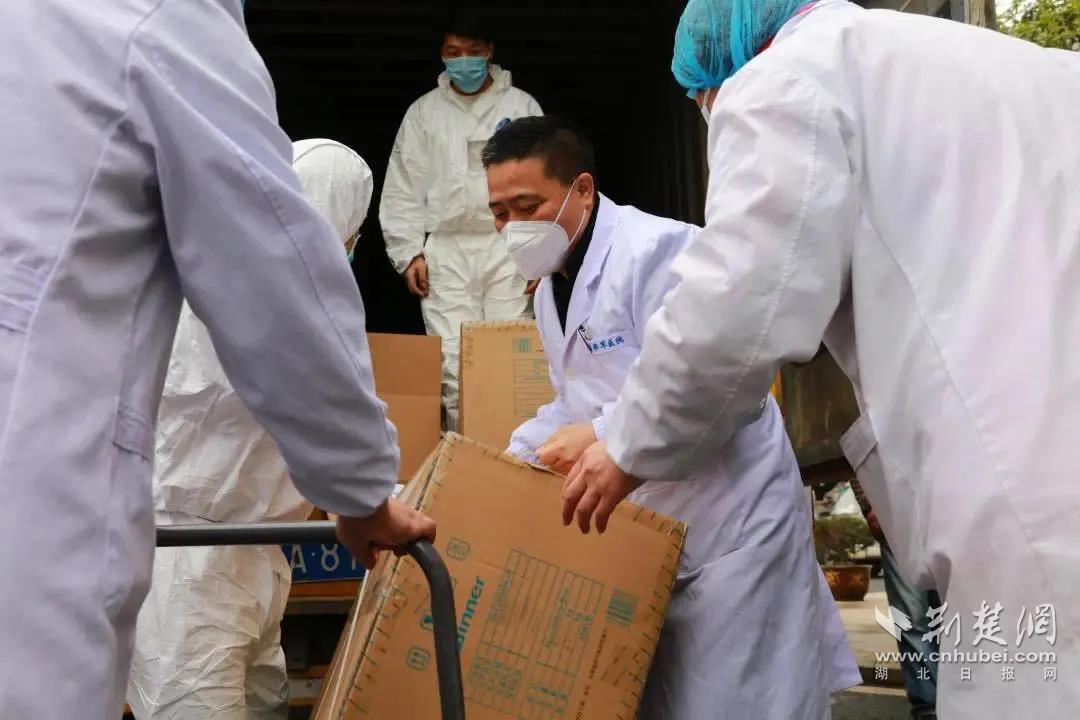 功能科主任董旭,放下B超探头,戴上劳保手套,变身为搬运物资的“大力士”。通讯员供图